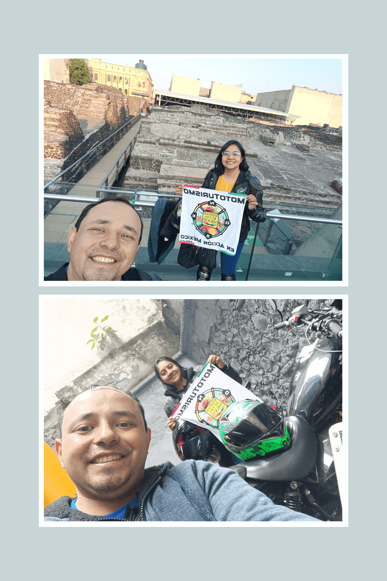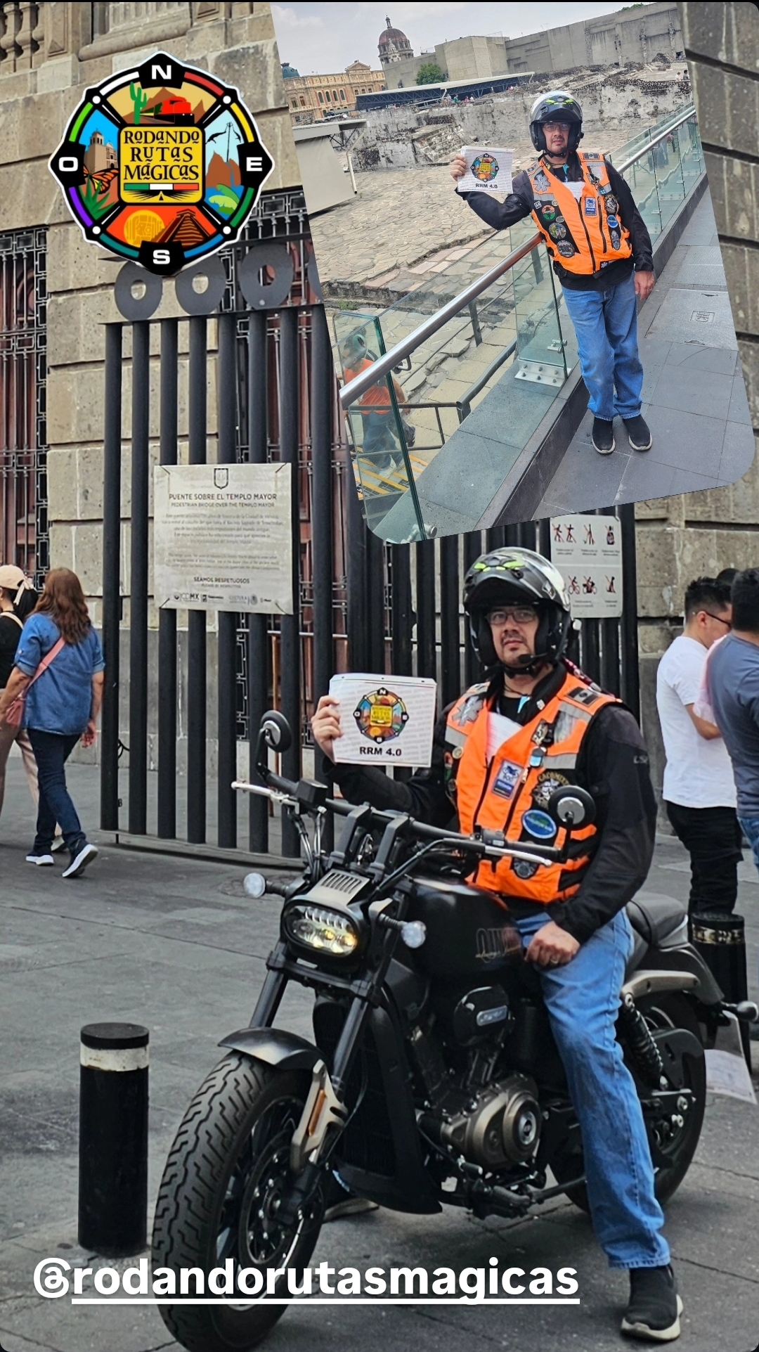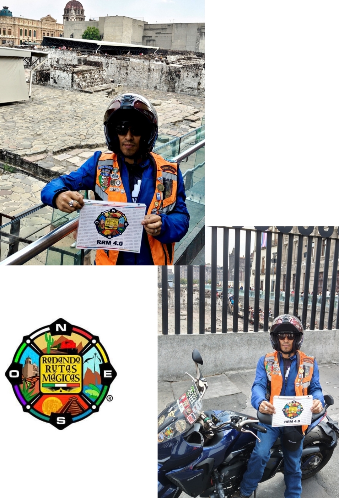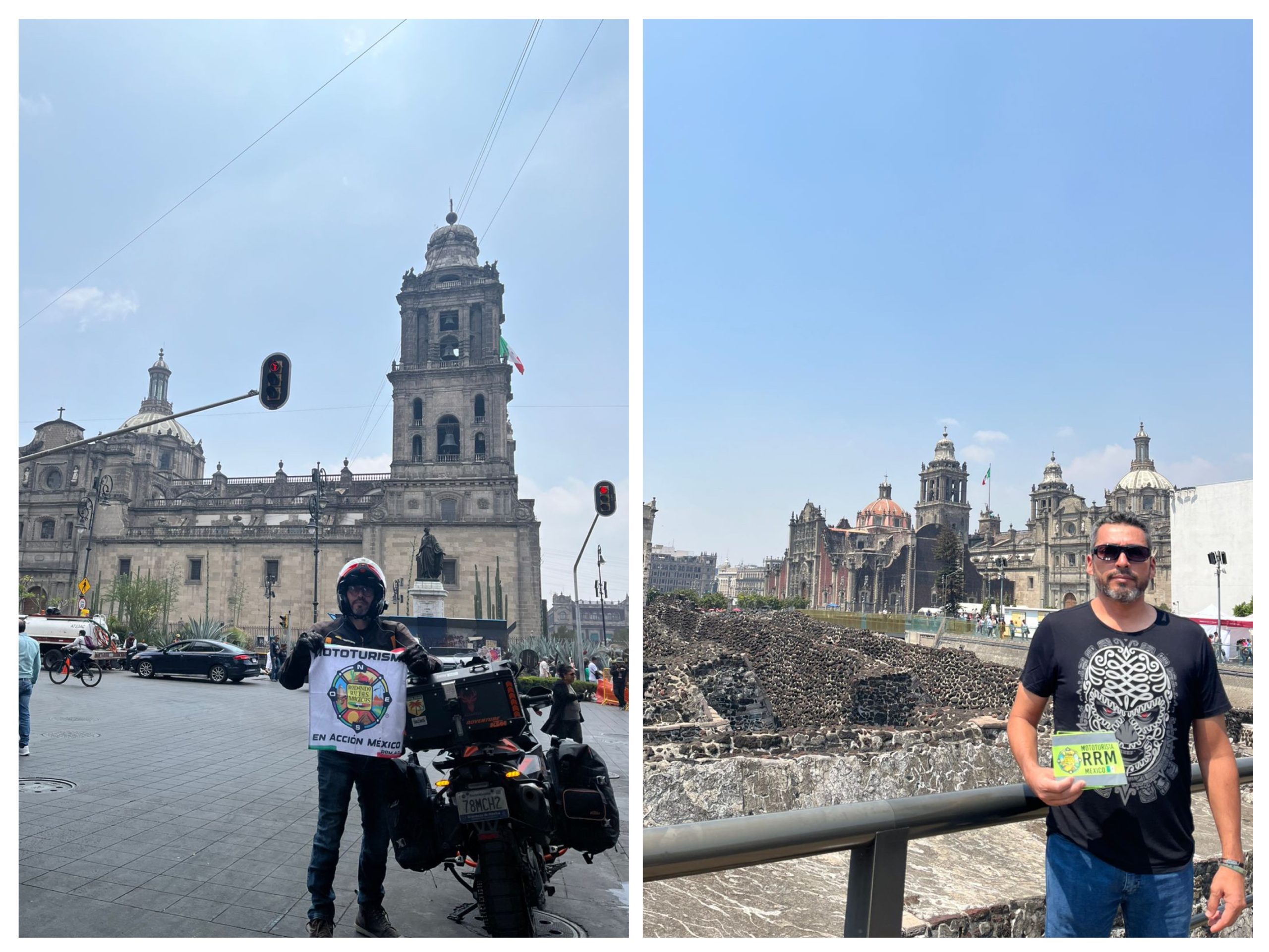 Rodamos al Zócalo de la CDMX tuvimos que dejar la moto en un estacionamiento a unas calles ya que por las manifestaciones feministas no dejaban entrar al cuadro central pero hicimos colage