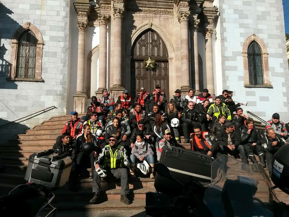 FOTO EN LA IGLESIA CENTRAL DE ANGANGUEO, MICH. CON LA COMUNIDAD DE DISCOVERMOTO DESPUÉS DE HABER VISITADO EL PASO DE LA MARIPOSA MONARCA