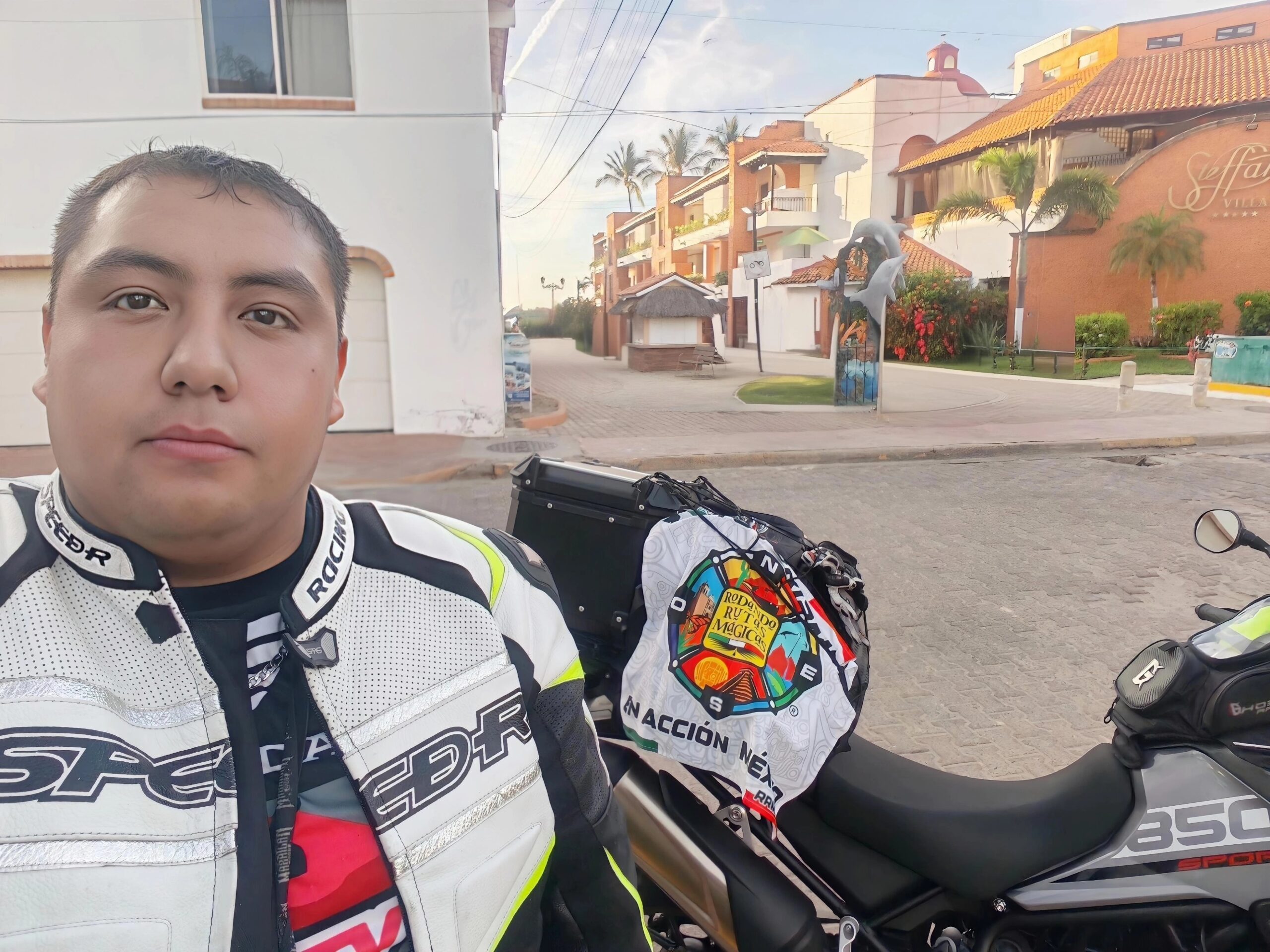 En rincón de guayabitos, la moto no pude meterla a la playa debido a que tránsito no nos dejó jaja, tampoco pudimos ponerla sobre las letras, aquí una foto de mi moto viendo a la isla coral junto con la foto de las letras.